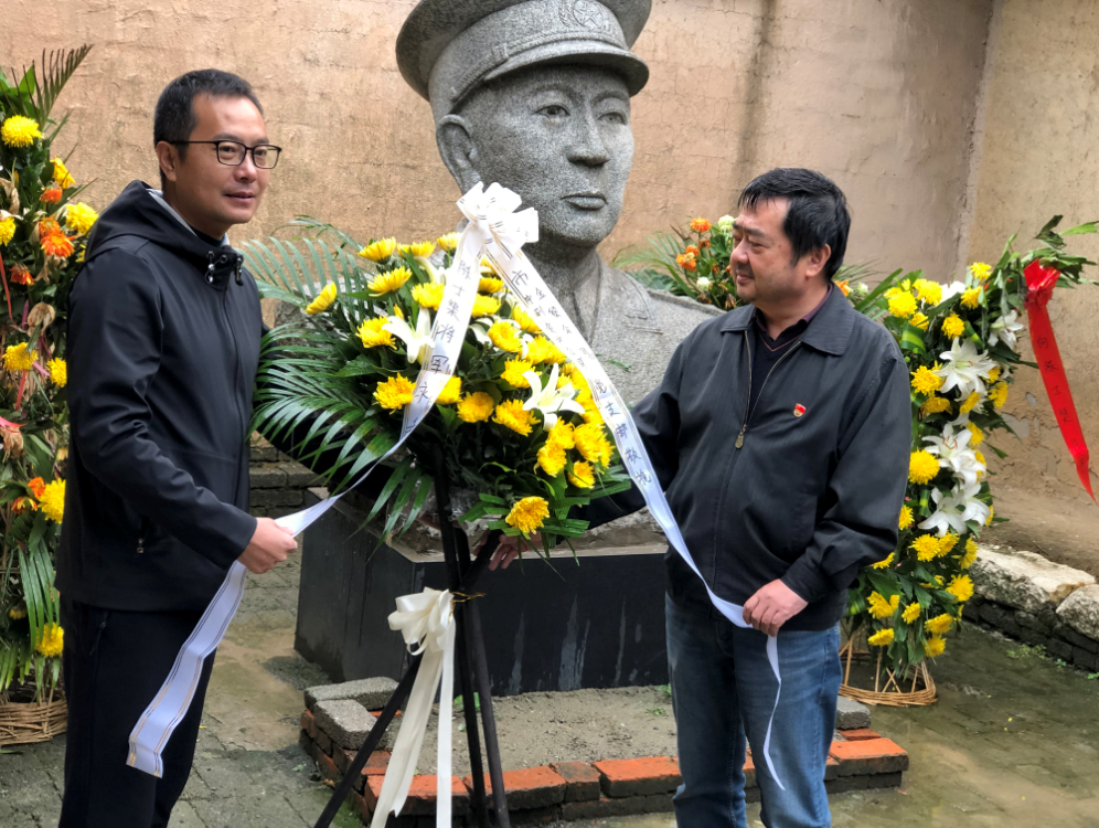 活動中,全體黨員首先在陳士榘將軍故居前參加了升旗儀式,高舉右拳重溫了入黨誓詞,使黨員們又接受了一次心靈上的洗禮。其次中荊資產公司黨委書記陳施俊同志和金貿公司黨委書記宋國新同志代表全體黨員向陳士榘將軍頭像敬獻花籃,表達了對革命先烈的尊敬和懷念。最后,黨員們懷著無比崇敬的心情參觀了陳士榘將軍故居,了解陳士渠將軍的光榮事跡。陳士渠將軍是從陳集走出的共和國開國將領,我們荊門人引以為豪!